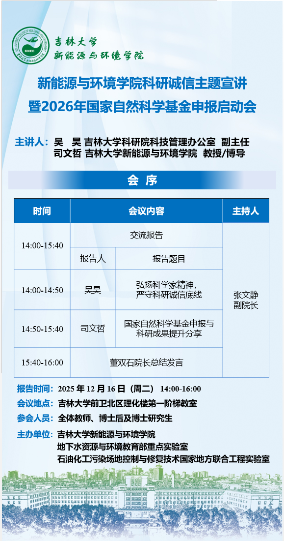 新能源与环境学院科研诚信主题宣讲暨2026年国家自然科学基金申报启动会