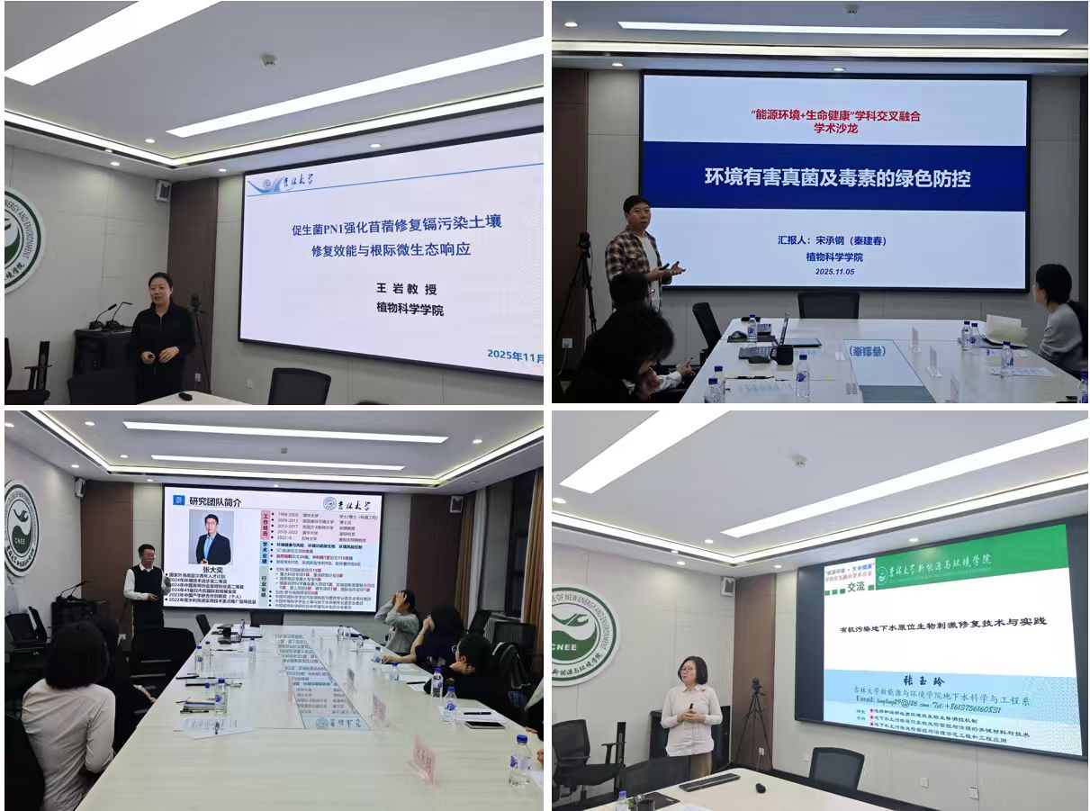 2025年11月5日下午,吉林大学新能源与环境学院牵头的“能源环境+ X”学科交叉融合论坛系列活动持续发力,第二场“能源环境+生命健康”学科交叉融合学术沙龙顺利举行。来自公共卫生学院、动物医学学院、人兽共患病研究所、植物科学学院、新能源与环境学院的师生代表齐聚一堂,围绕多领域交叉视角下的环境与生命健康议题深入研讨,推动学科交叉从理念走向更具体的技术与应用层面。