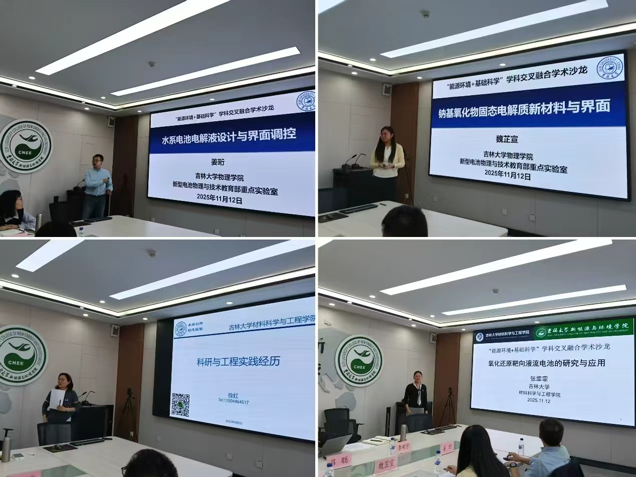 2025 年 11 月 12日下午,吉林大学新能源与环境学院牵头的 “能源环境 + X” 学科交叉融合论坛系列活动持续发力,第四场 “能源环境 + 基础科学” 学科交叉融合学术沙龙顺利举行。来自物理学院、材料科学与工程学院、新能源与环境学院的师生代表齐聚一堂,以跨领域视角深耕理论创新,推动学科交叉从理念落地到技术应用的深度突破。