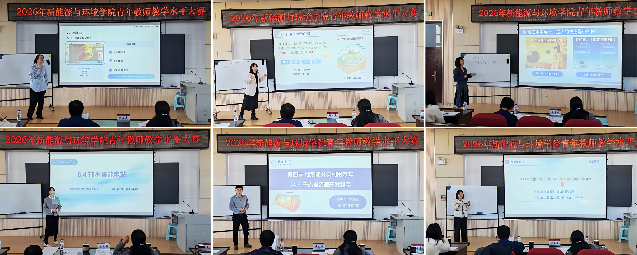 根据吉林大学关于举办第十二届''青年教师教学水平大赛''通知要求,为进一步提升我院青年教师教学能力,夯实青年教师教学基本功,促进课堂教学质量提高,新能源与环境学院于2026年4月7日在前卫北区理化楼一阶举行了学院2026年度''青年教师教学水平大赛''。
