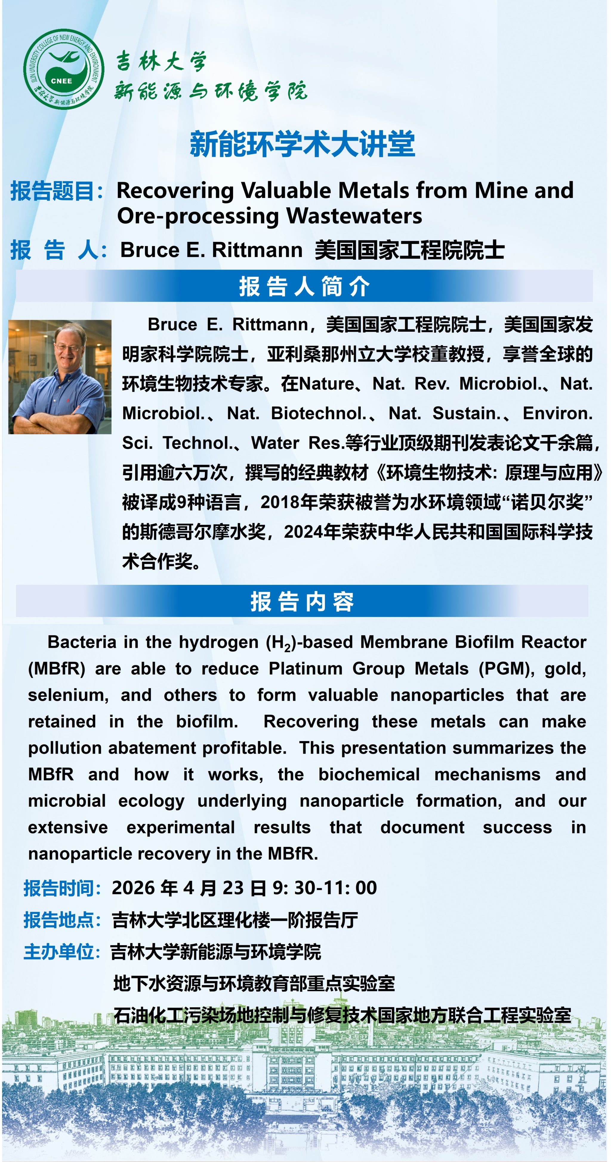 庆祝吉林大学建校80周年新能环学术大讲堂-Recovering Valuable Metals from Mine and Ore-processing Wastewaters